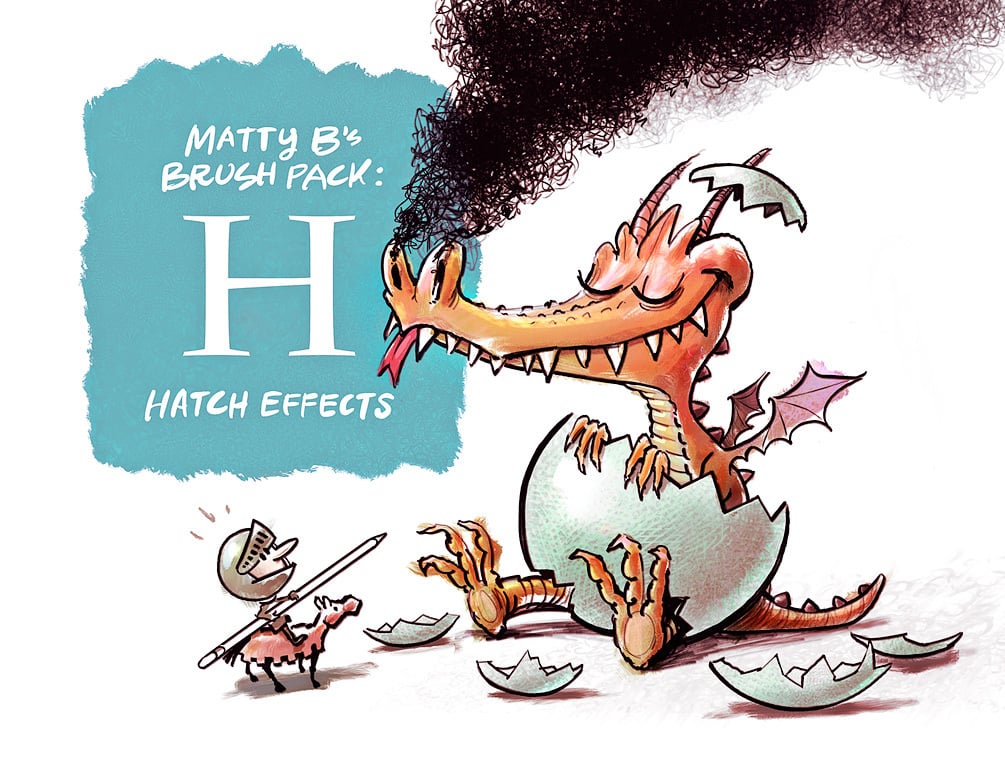 Hatch Effects: Fine-tuned for use with styluses, there's enough lines, dots, scribbles and marks to liven up any drawing. 35 brushes included in the brush pack zip file.