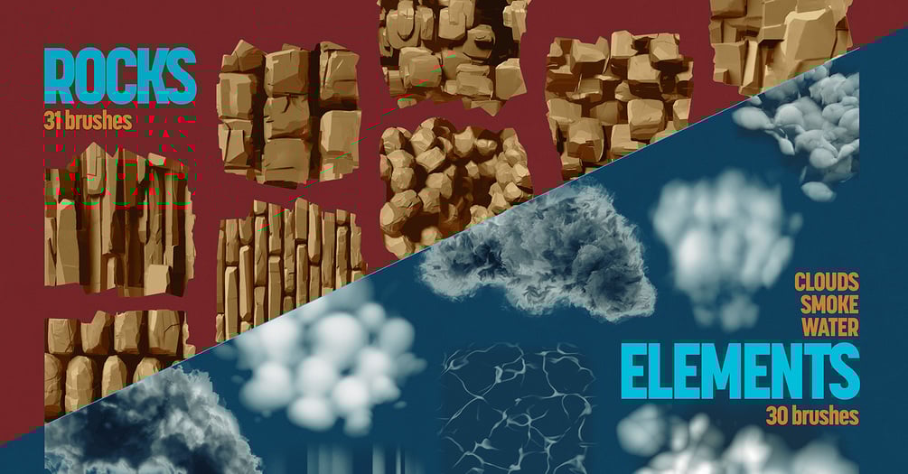 • Rock brushes–create mountains, stone, cliffs and crags.
