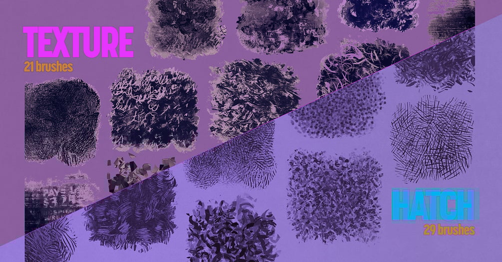 • Hatch brushes–overlay hand-made marks and tics.