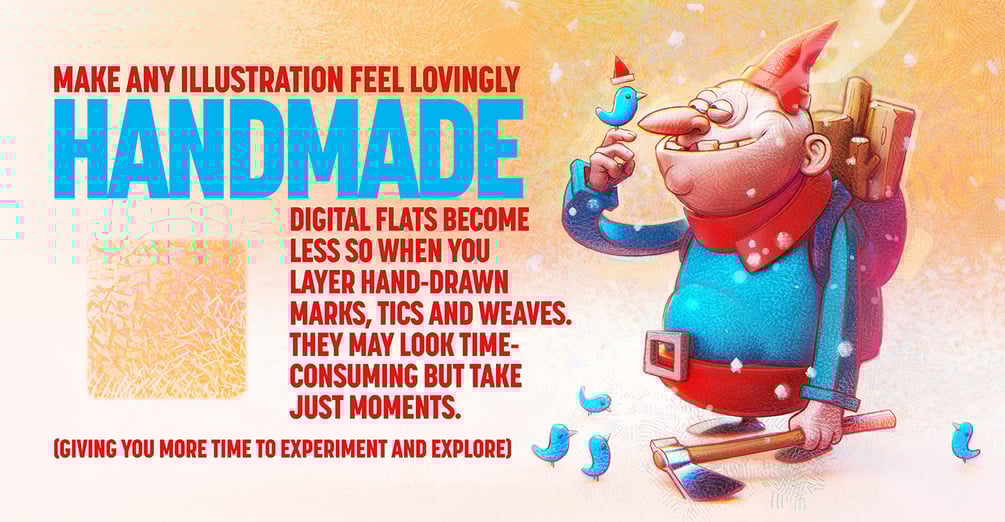 • Hatch brushes–overlay hand-made marks and tics.